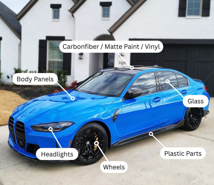 Produktet vårt er utviklet for å dekke et bredt spekter av bruksområder som lakk, glass, felger samt alle PPF- eller foliebelagte biler, både blanke og matte.