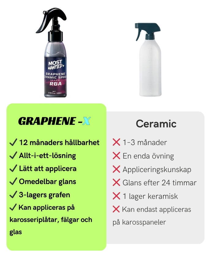 En produkt, totalt skydd på alla ytor inklusive karosspaneler, vindruta och fälgar. Uppgradera till Graphene-X idag!